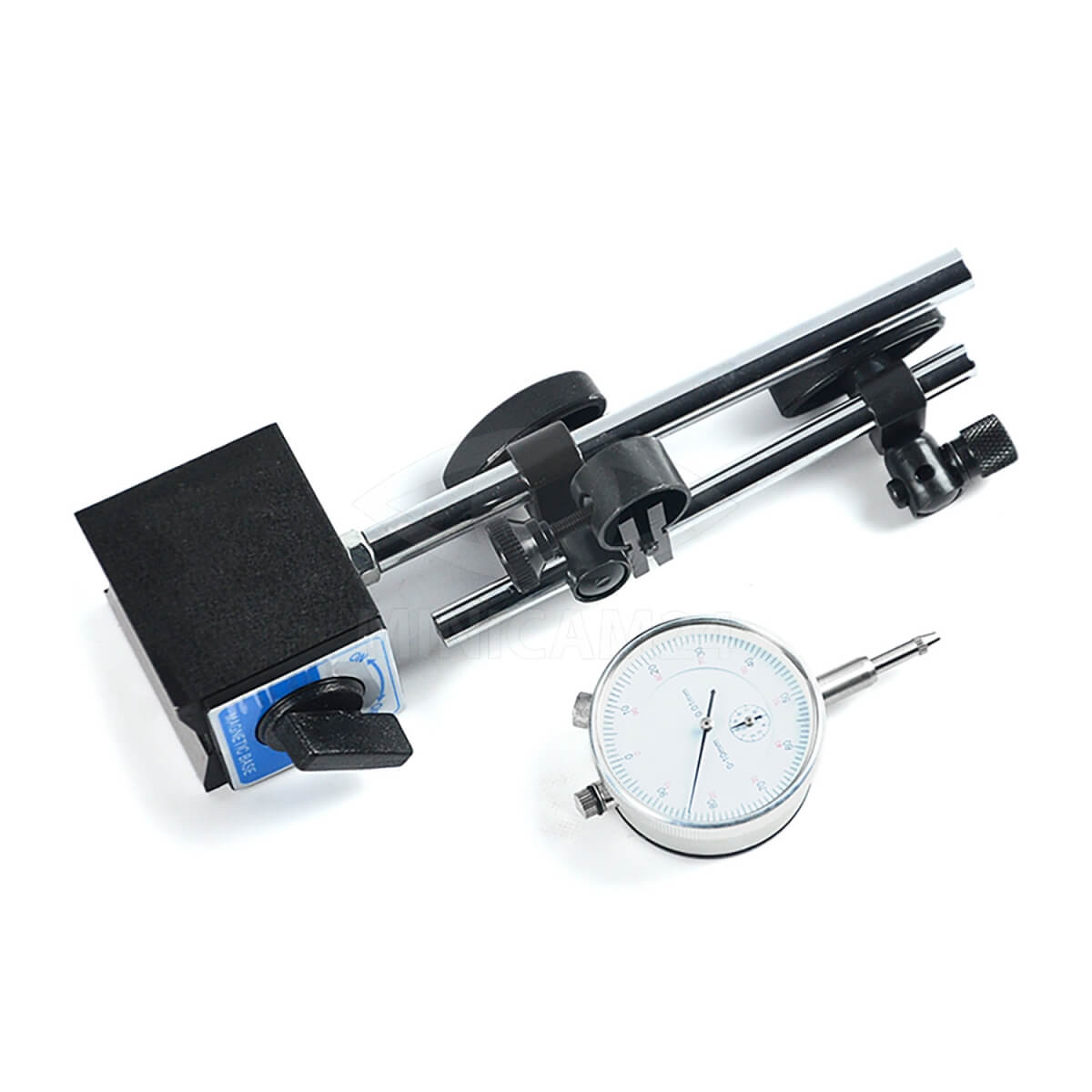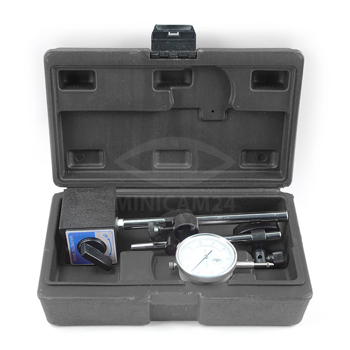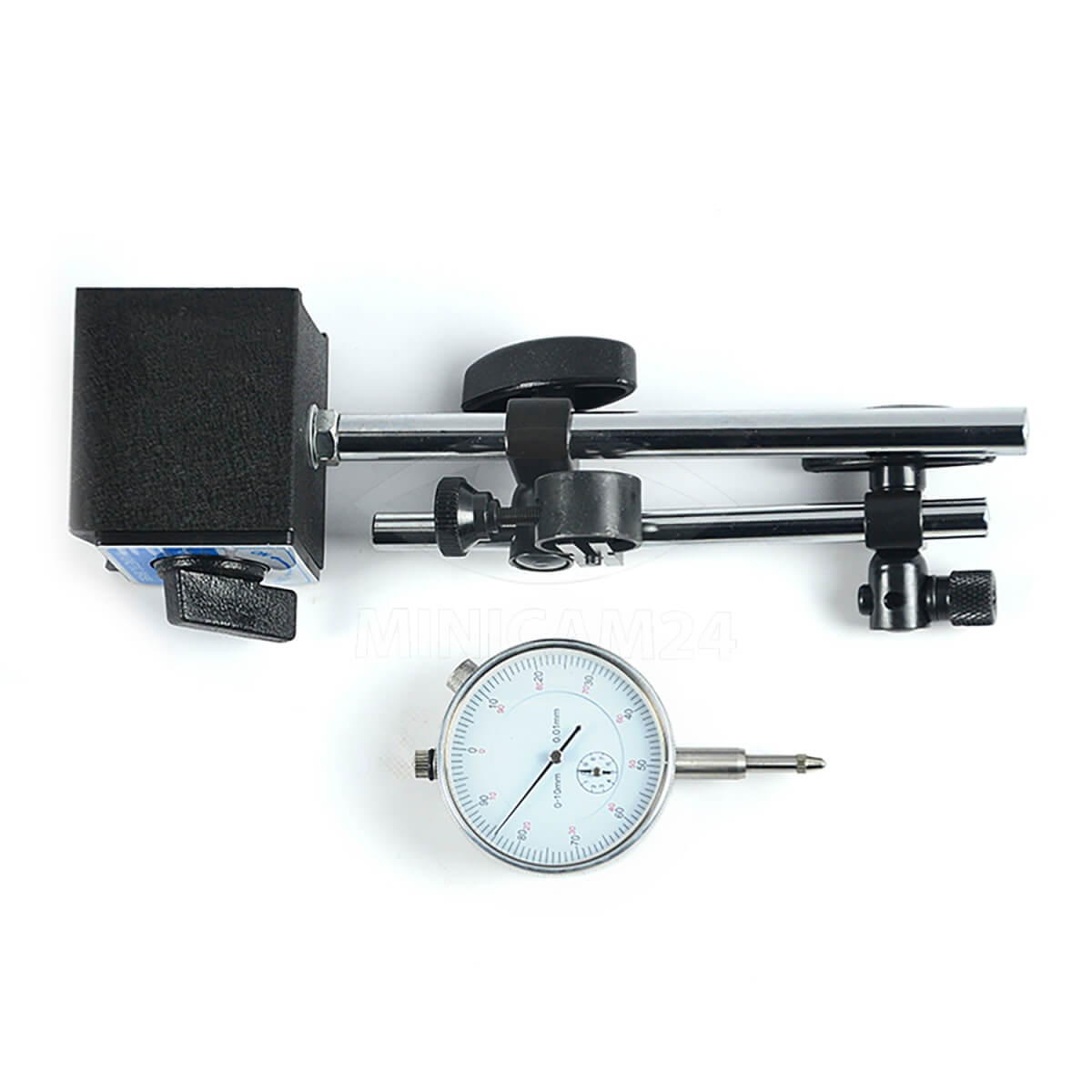 Индикатор часового типа с магнитной стойкой Gestell предназначен для точного измерения линейных размеров как абсолютным, так и относительным методами. Он позволяет определить величину отклонений от заданной геометрической формы и взаимное расположение поверхностей. Измерительный диапазон устройства составляет от 0 до 10 мм с шагом 0.01 мм. Индикатор оснащен двумя шкалами: основной для отсчета сотых долей миллиметра и шкалой счетчика оборотов для измерения миллиметров.